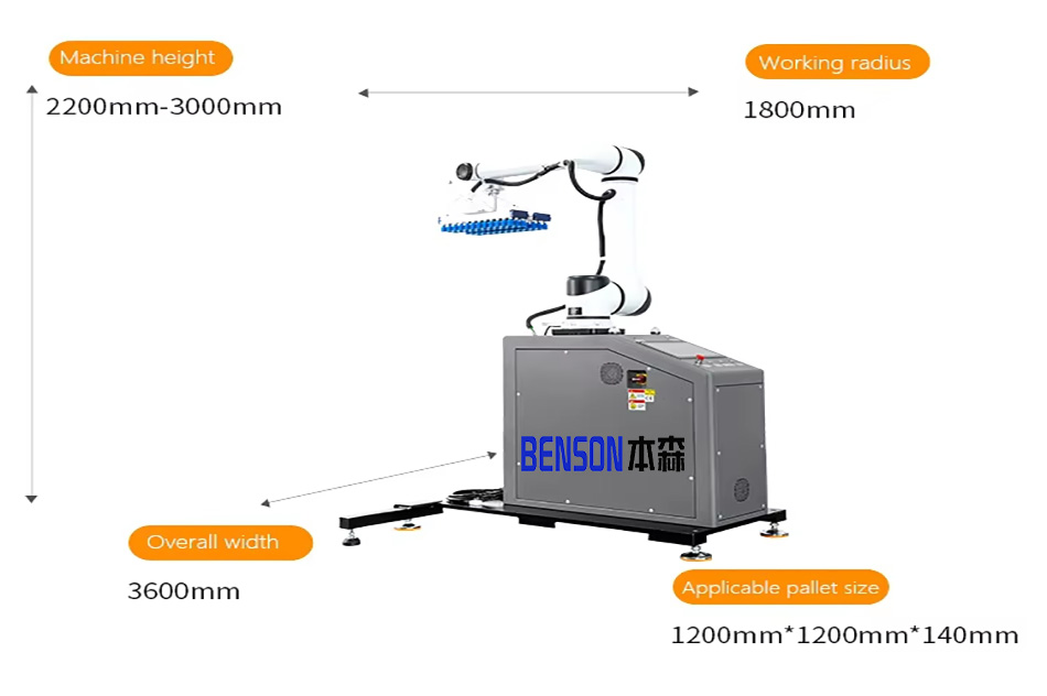 Benson's precise six-axis collaborative robots include intelligent collaborative palletizing robots such as mobile collaborative palletizing robots for food and medicine and mobile collaborative palletizing robots for daily necessities. They can a...
